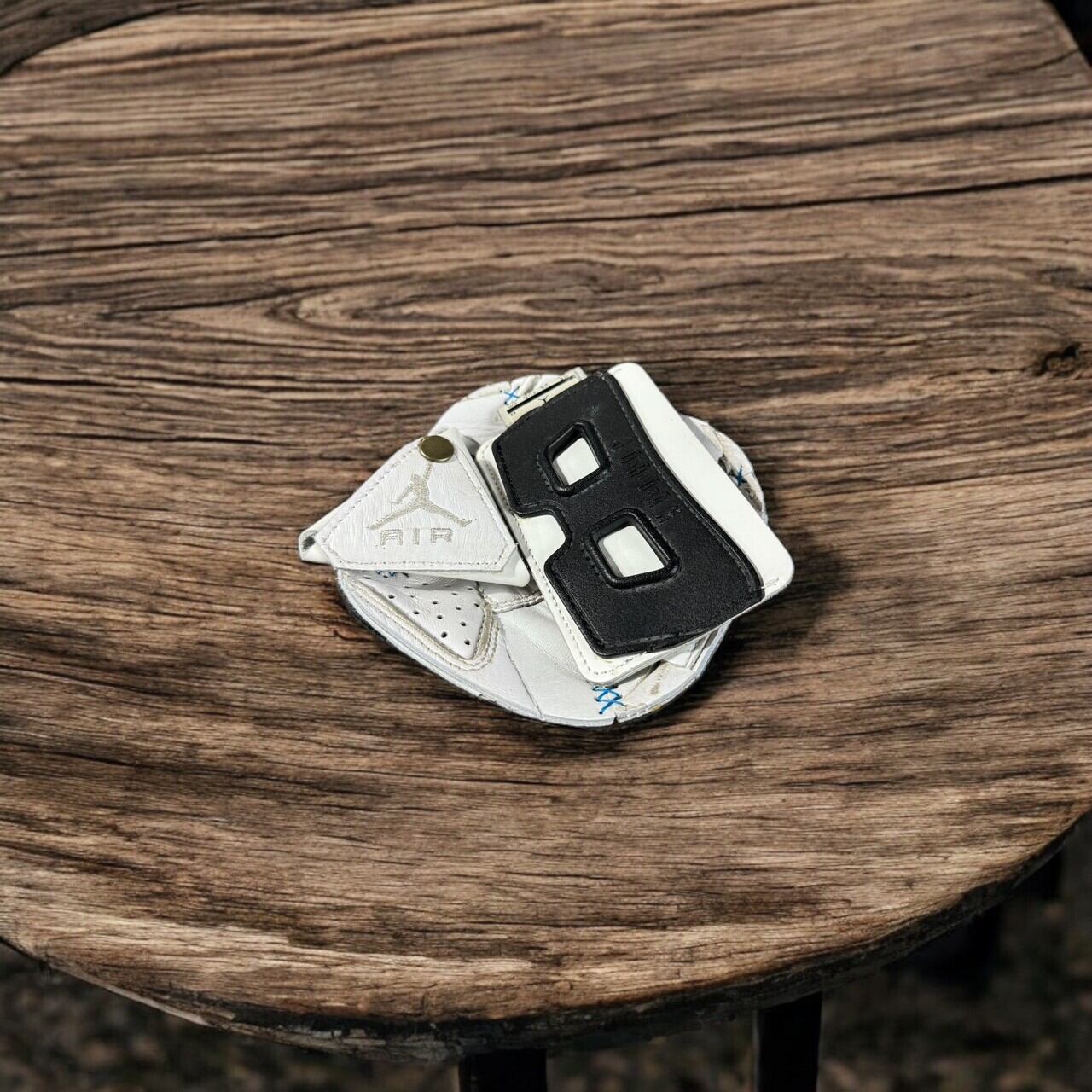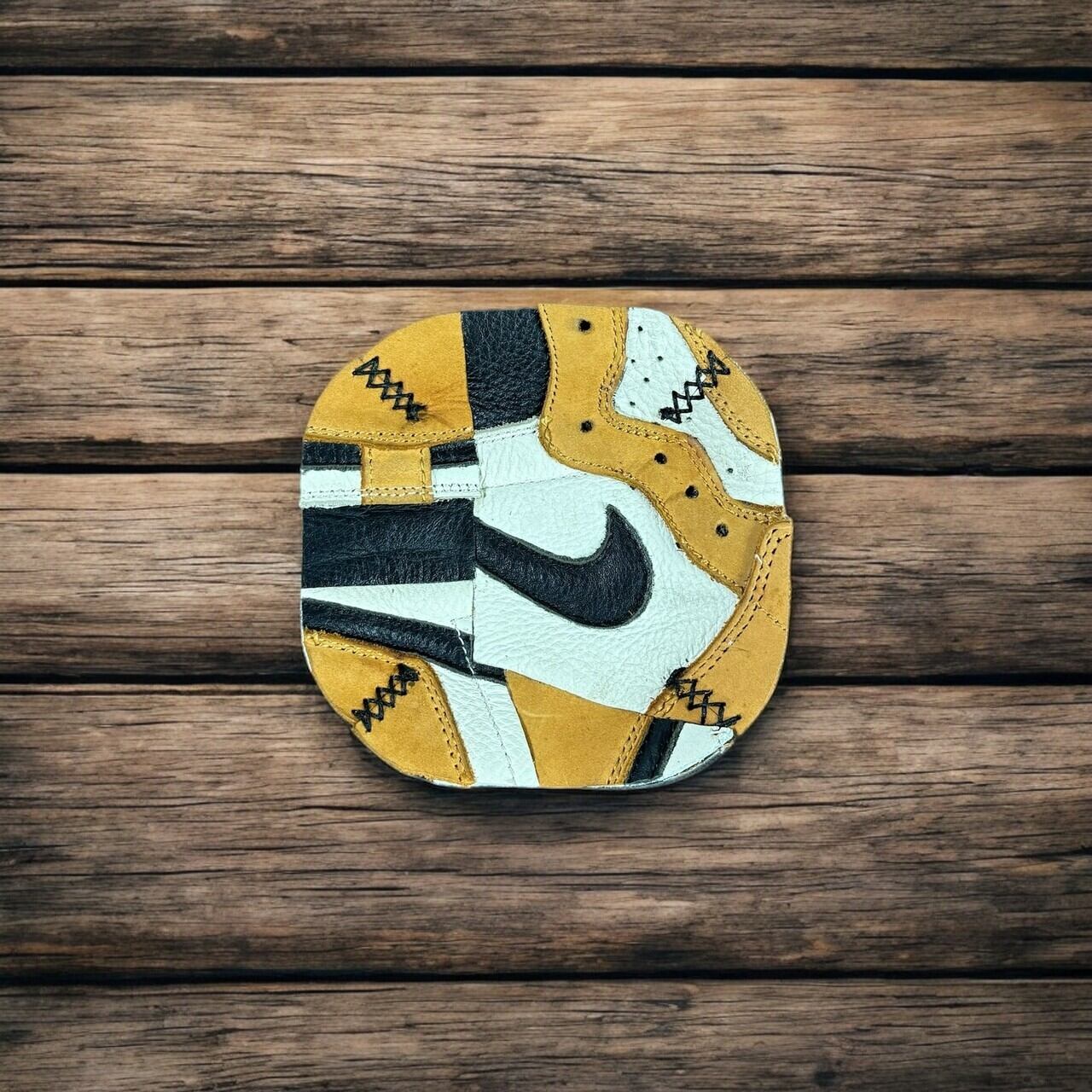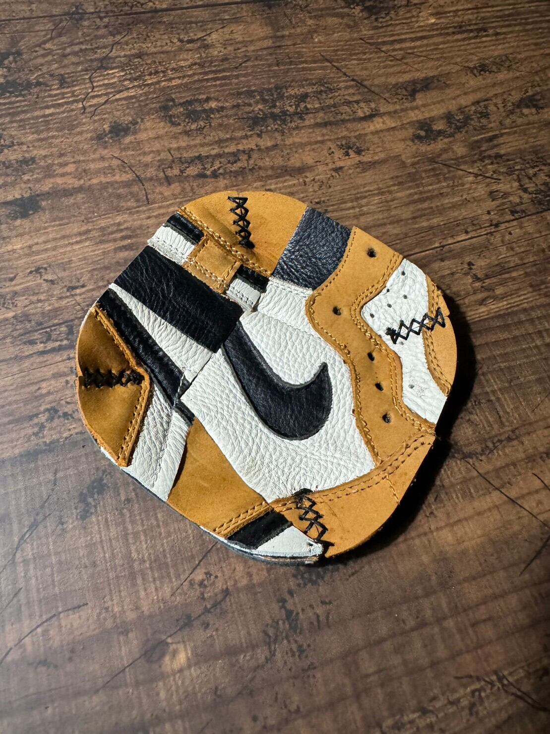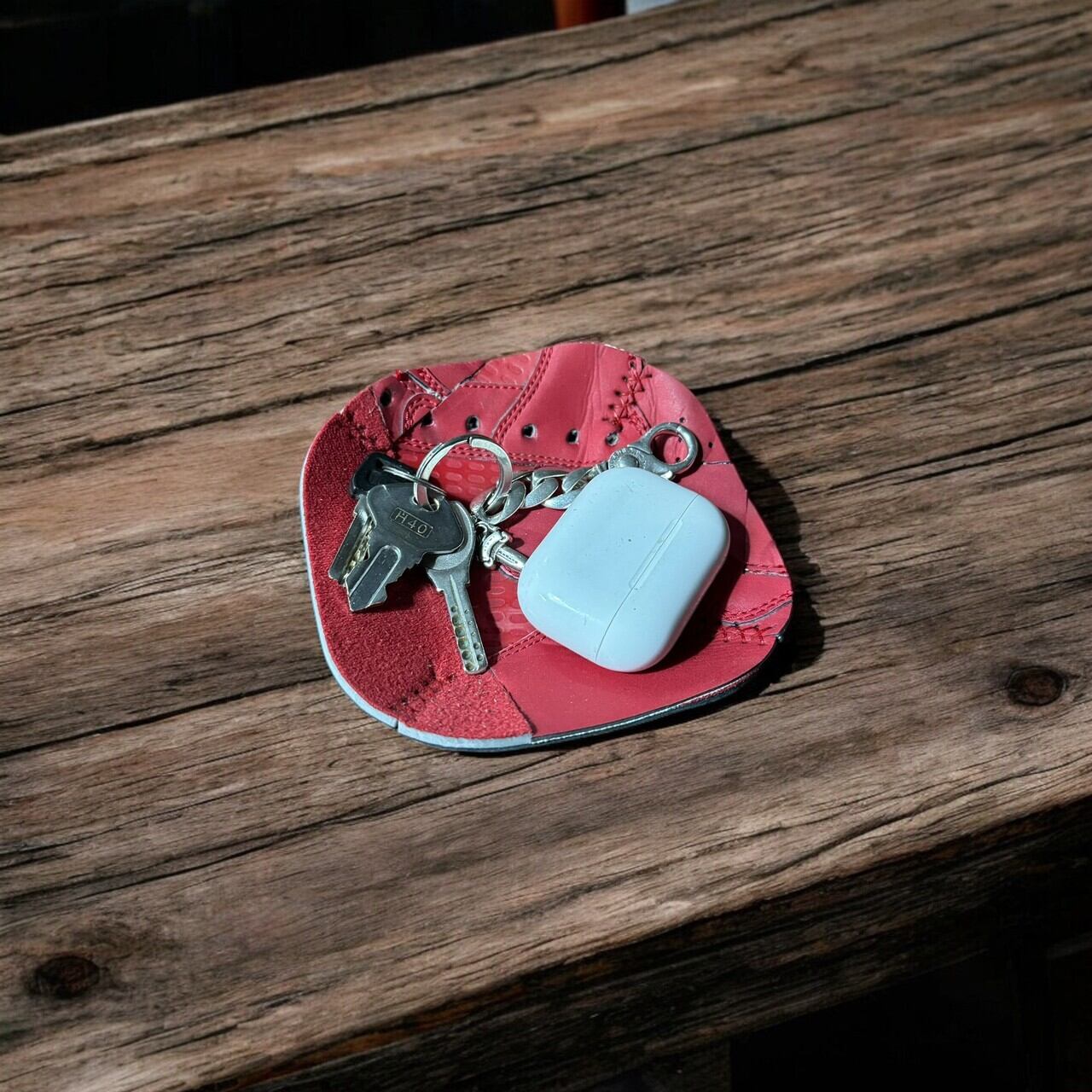 スニーカーの革をランダムに組み合わせたパッチワーク小物トレーです。